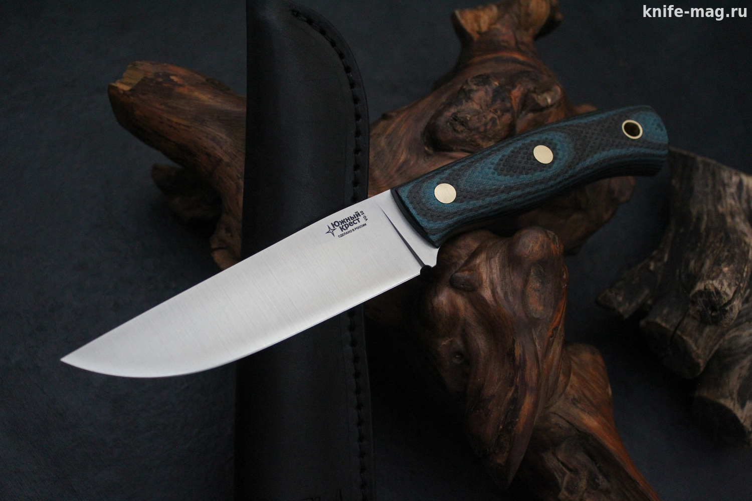 Рукоять выполнена из микарты — это конструкционный композитный материал, представляющий собой слоистый пластик на основе ткани и полимерного связующего вещества. Он прочный, не впитывает ни воду, ни запахи, тактильный и высоко декоративный. Кроме того, текстолит хорошо переносит значительные перепады температуры.
