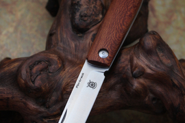 Узнаваемая “хитрая щучка” клинка, обязательный “грибок”, кстати, выпиленный вручную на модели с фактурным платаном на рукояти. Резучая нержавеющая сталь AUS-10 и надежный замок Back-Lock. Все это делает нож современным, рабочим, удобным и аутентичным. Ножи визуально приятны и ложатся в руку как влитые.