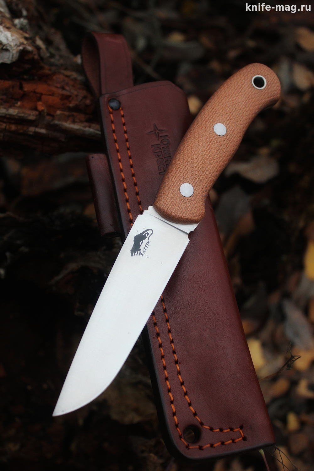 Рукоять выполнена из микарты — это конструкционный композитный материал, представляющий собой слоистый пластик на основе ткани и полимерного связующего вещества. Он прочный, не впитывает ни воду, ни запахи, тактильный и высоко декоративный. Кроме того, текстолит хорошо переносит значительные перепады температуры.