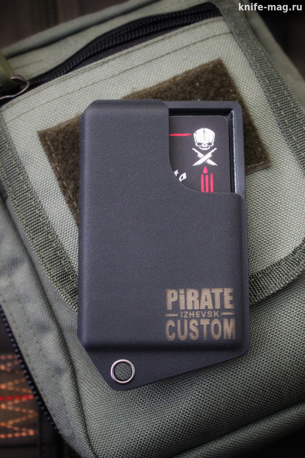 «КАРДХОЛДЕР 3.0 SLIM (BLACK)» компании PIRATE CUSTOM (Пират Кастом) это модель, которая создана для ценителей активного образа жизни. Использование такого аксессуара позволяет всегда иметь под рукой нужное количество банковских и скидочных карточек. При этом за счет жестких стенок можно быть уверенным в том, что ваши карточки останутся в полной безопасности. В качестве материала здесь используется любимый многими ножеманами кайдекс. Твердый, но при этом достаточно гибкий пластик на основе акрила. Главная особенность этого материала - устойчивость к влаге, воздействию агрессивных жидкостей и резким перепадам температуры. В процессе нагревания кайдексу можно придать любую форму. Именно эта особенность позволяет создавать из него чехлы, ножны и кардхолдеры.